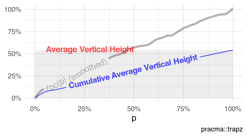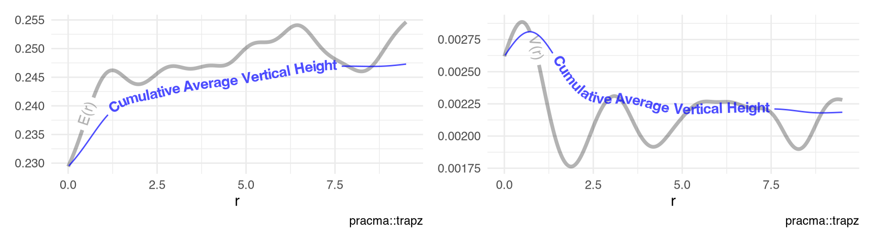 - indicates the cumulative average vertical height of the trapzoidal integration of the conditional mean \(E(r)\);